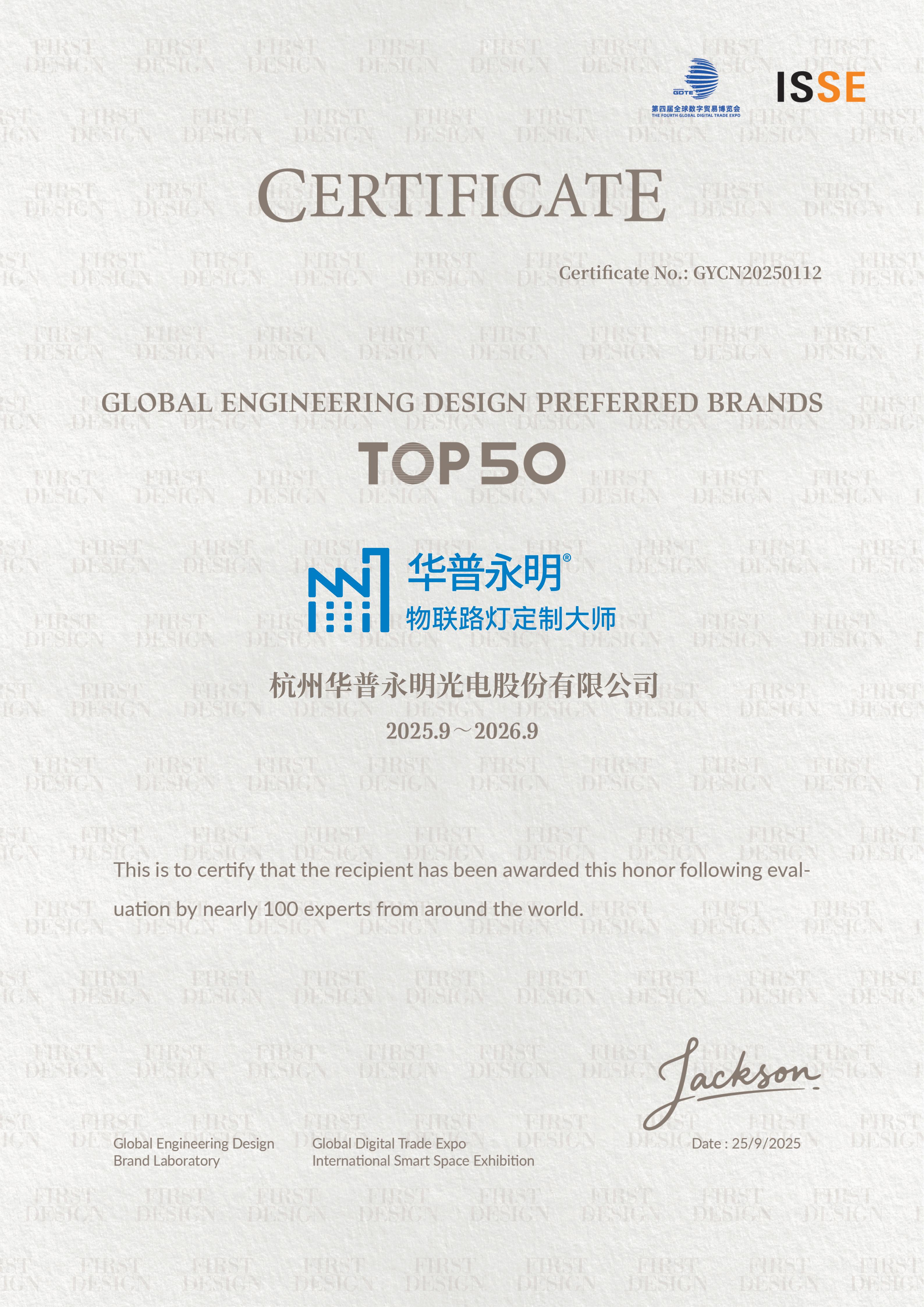 杭州華普永明光電股份有限公司(以下簡(jiǎn)稱(chēng)華普永明)榮耀登榜 "2025全球工程設(shè)計(jì)優(yōu)選品牌 TOP50",充分彰顯其在專(zhuān)業(yè)室外照明領(lǐng)域持續(xù)引領(lǐng)行業(yè)創(chuàng)新的硬核實(shí)力。